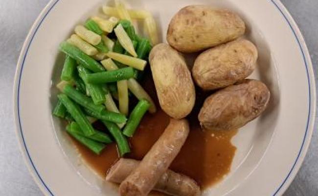 Menu & Snack of the day SOUPE : Potage navets Chipolata, duo de haricots, grenailles cajun Dessert : Pomme MENU VÉGÉTARIEN : Boudin blanc aux herbes, duo de haricots, grenailles cajun Traces de : céleri (chipolata) oeufs (chipolata) lait (chipolata) moutarde (chipolata)
